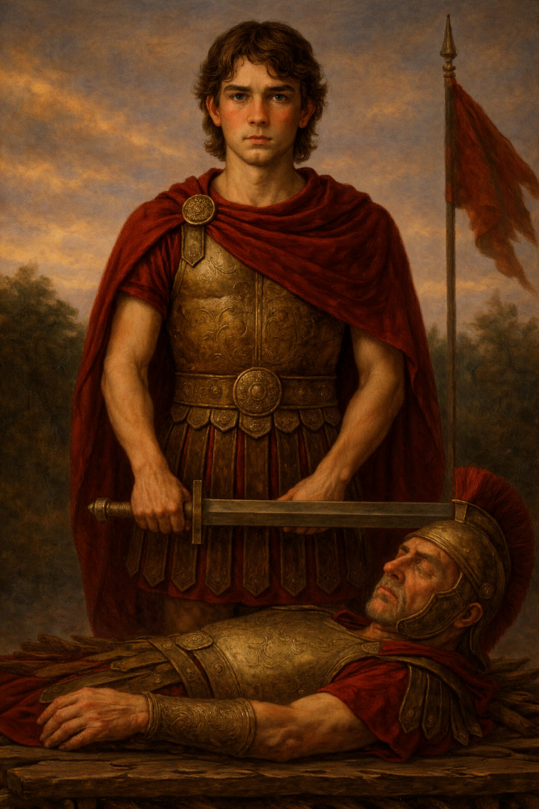 When he was fifteen, Gaius fell in battle against rebellious tribes in the north. His body returned on a shield. His last pay was placed in Livia’s hands. Vincit did not weep publicly. He stood straight beside the funeral pyre and swore an oath not to vengeance—but to greatness.